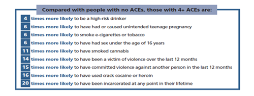 The strongest criticism of the ACE lens relates to the practice of summing the number of ACEs experienced to determine an ACE ‘score’, and the misapplication of this ‘ACE framework’. Locally our approach does not promote screening in this way or service models where we ‘count ACEs’. Our emphasis is on understanding the life-course impacts of adversity and trauma on children, adults and the wider community.